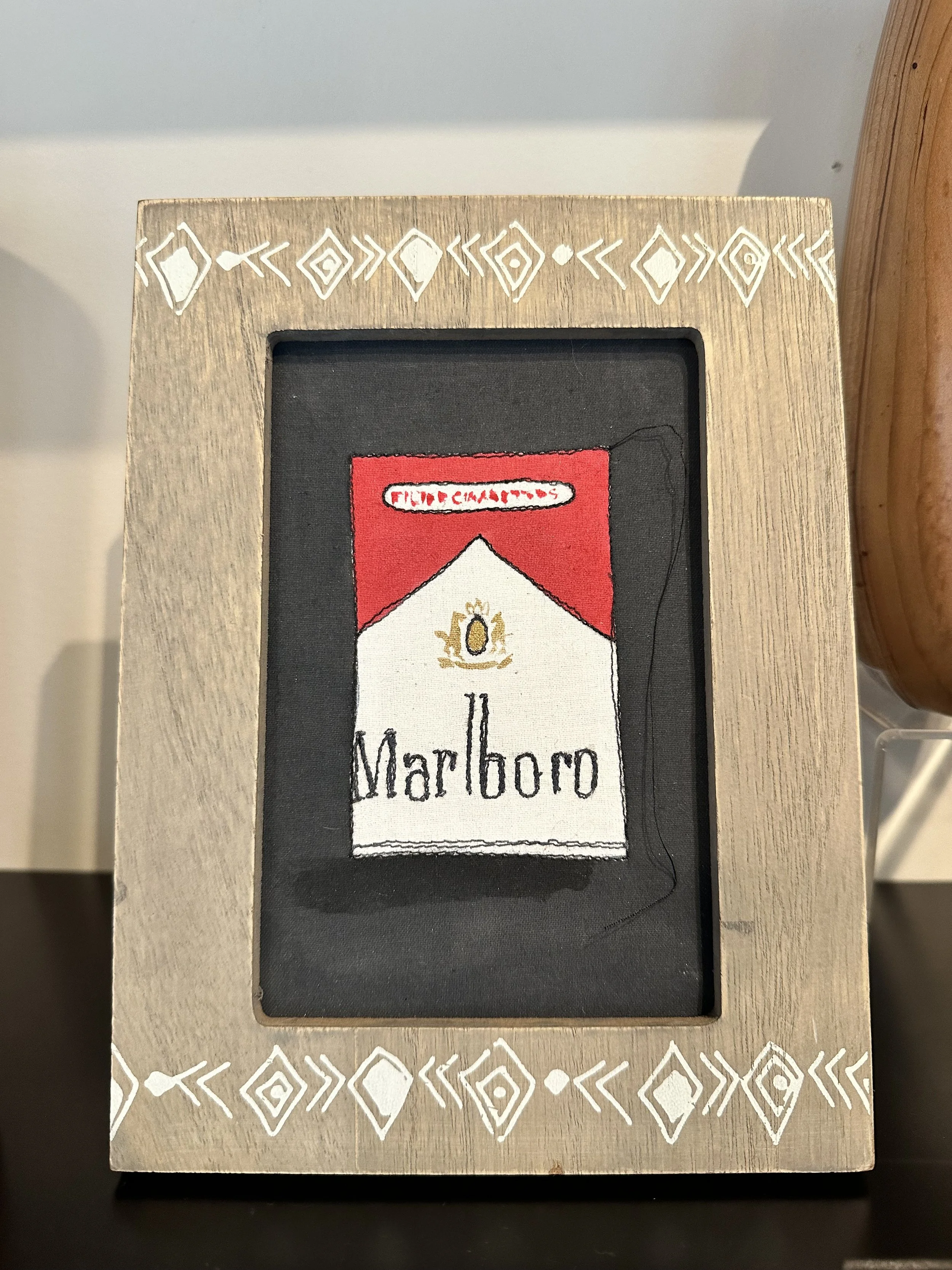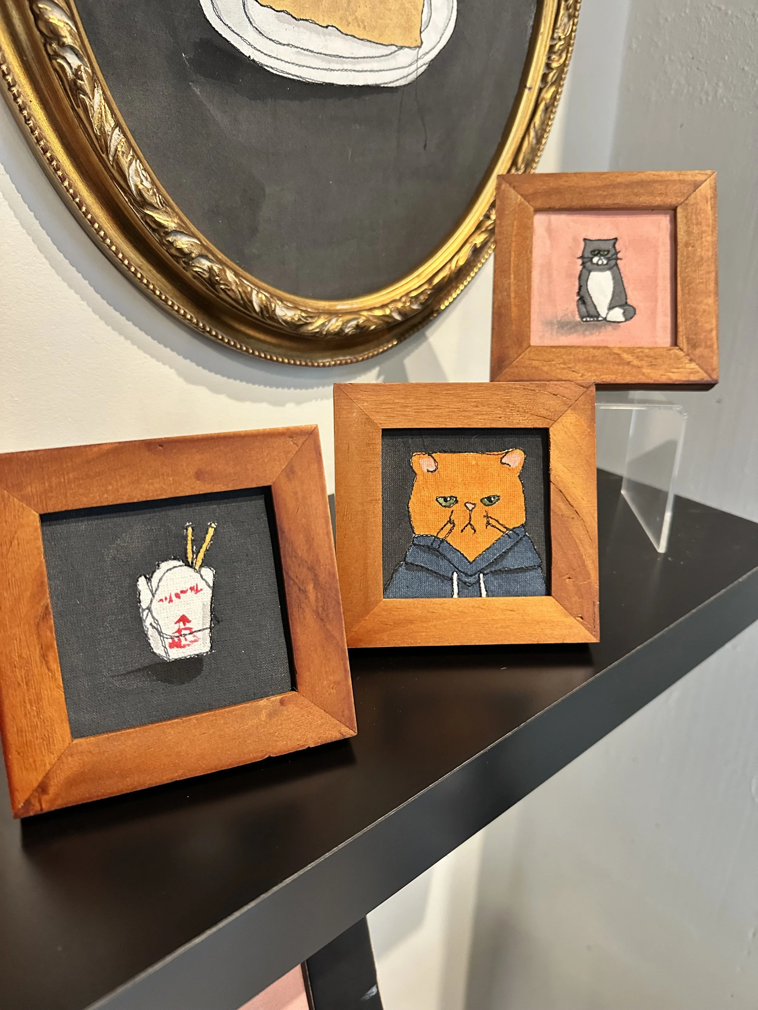 “What is it? Let’s call it textile art, free hand machine embroidery and watercolor on linen. From architecture with accompanying short stories fashioned on a vintage smith corona typewriter to portraits in thread with vegetable dye that never seem to stay in the frame.”